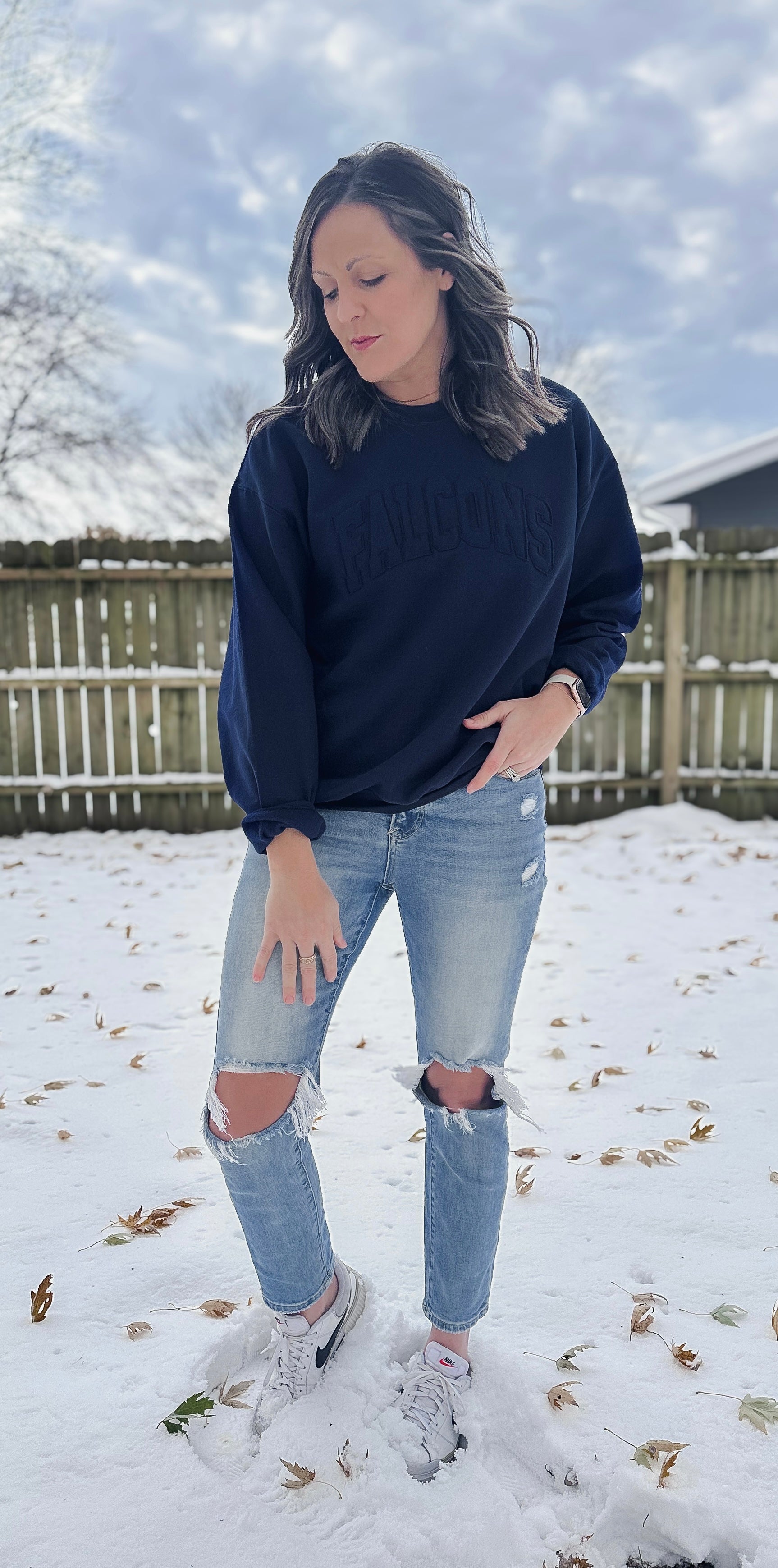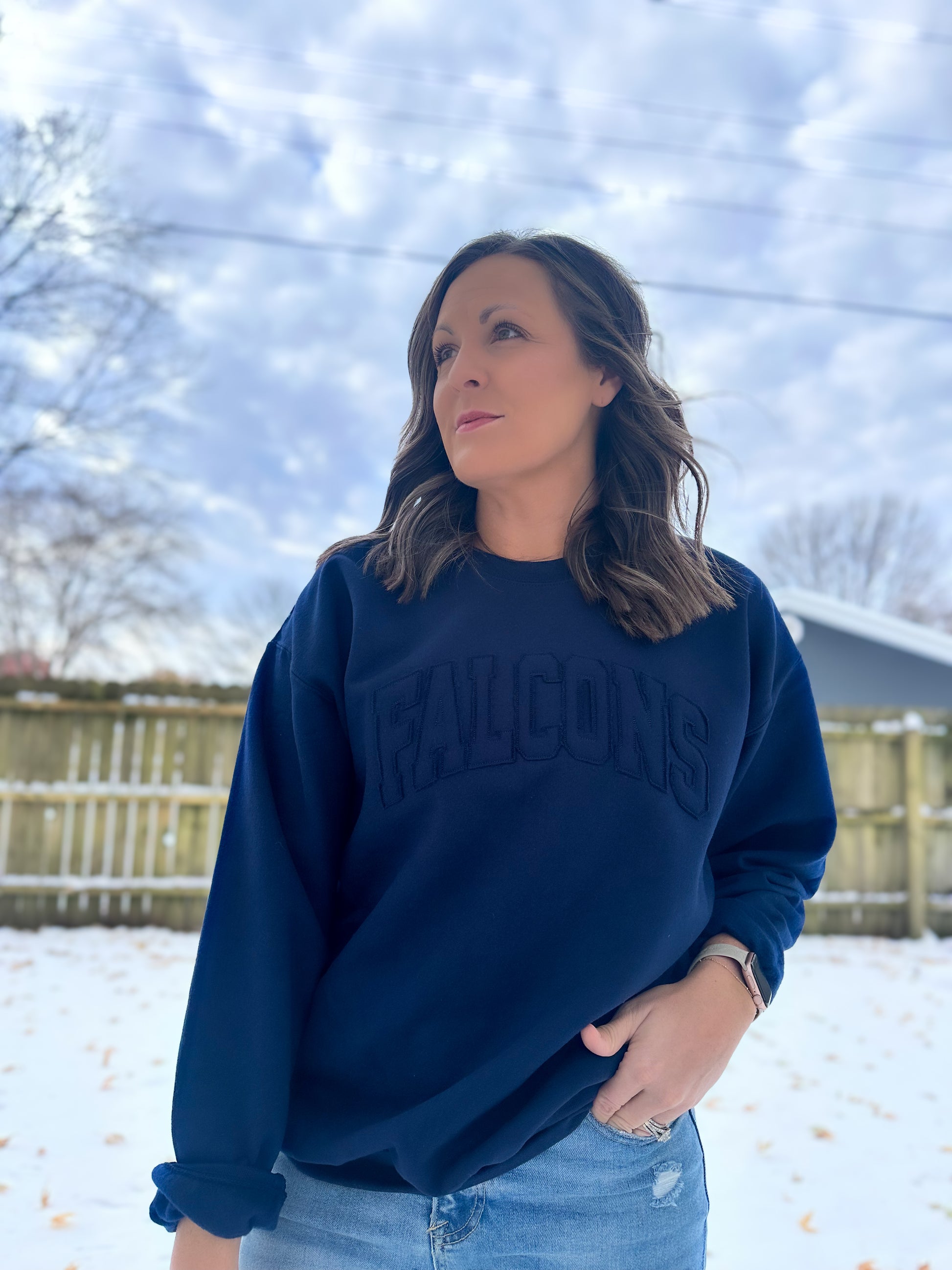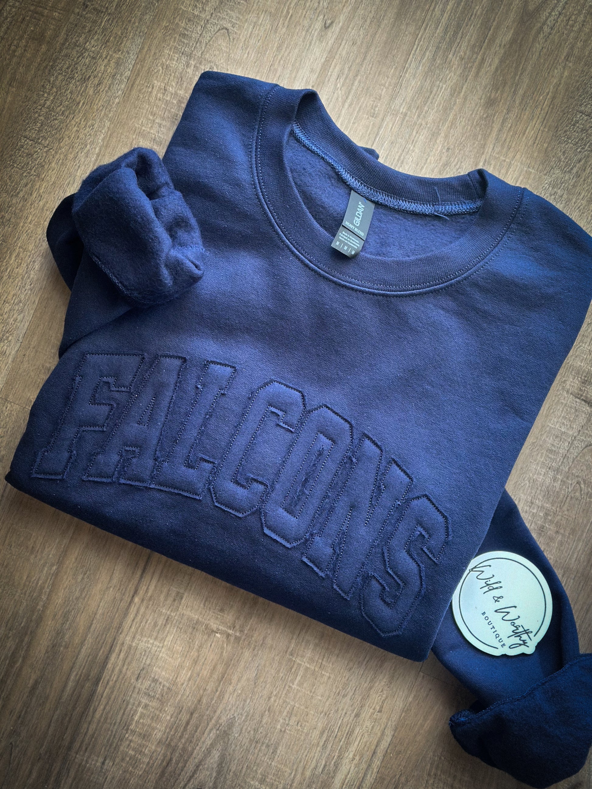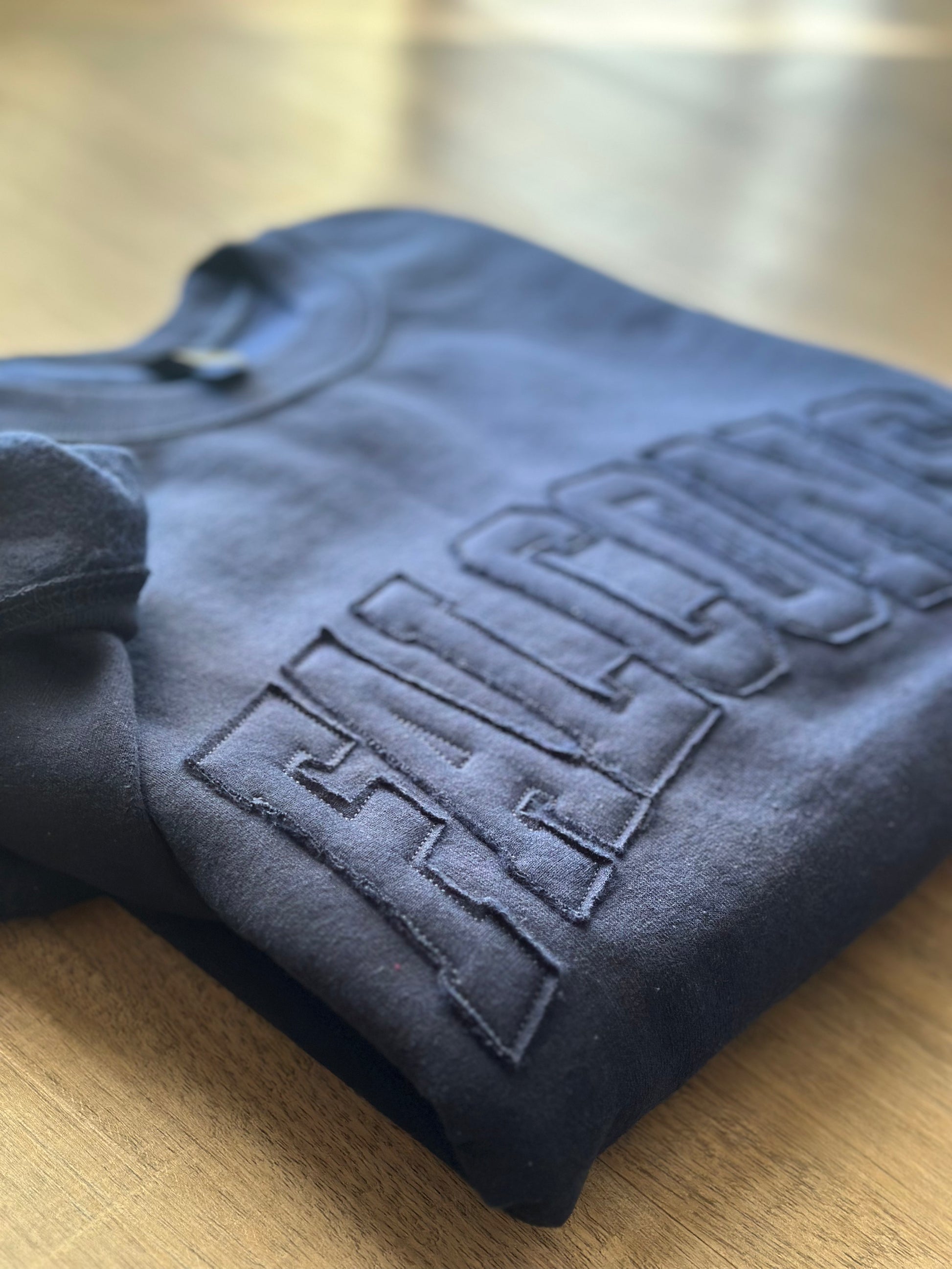Rep your team in cozy, vintage style with our Falcons Raggy Crew! Featuring a tone-on-tone navy blue raggy appliqué, this sweatshirt gives off that perfectly lived-in, game-day vibe. Soft, comfy, and full of spirit — it’s the ideal pick for sporting events, school pride, or gifting your favorite Raider fan.