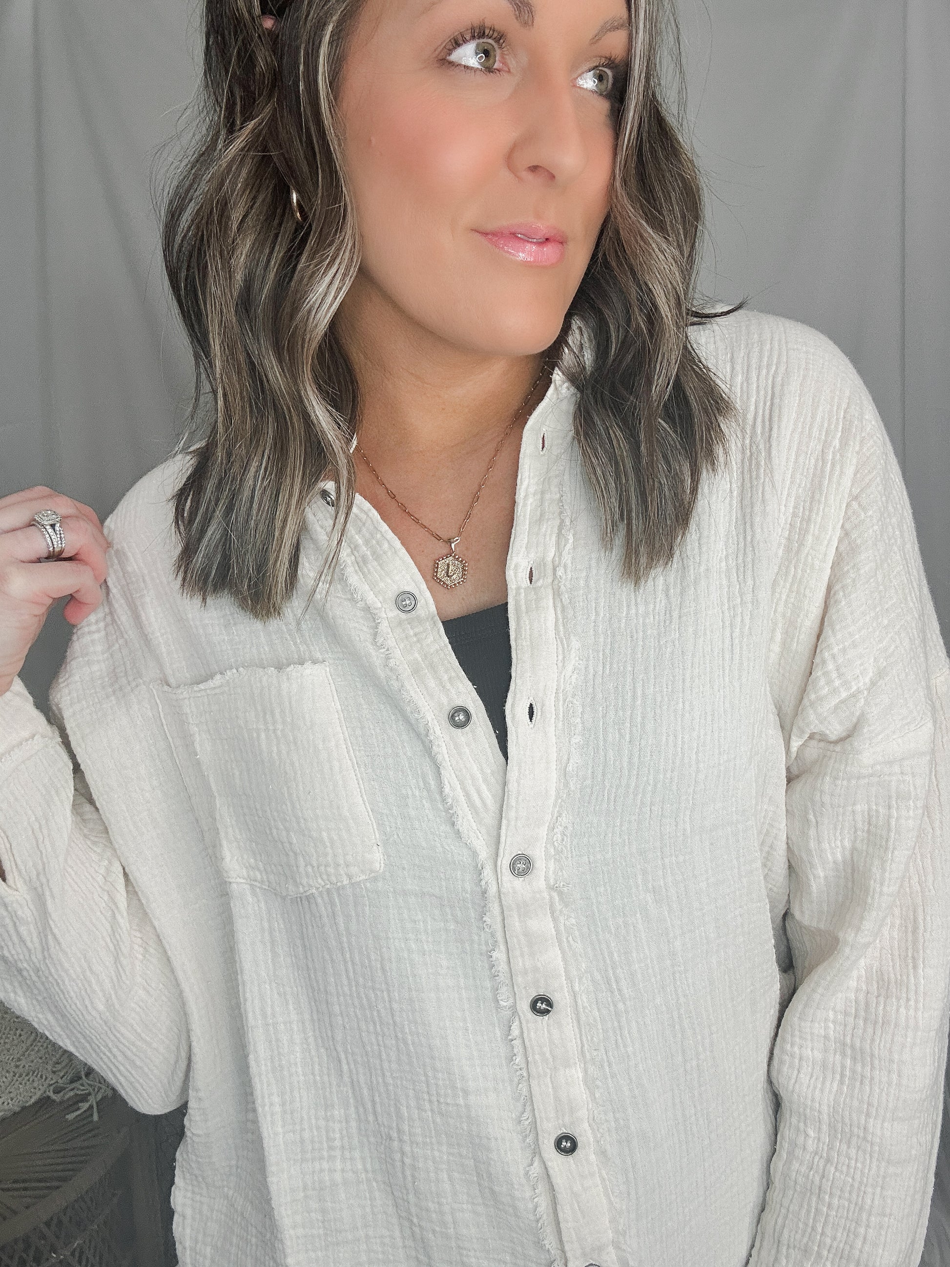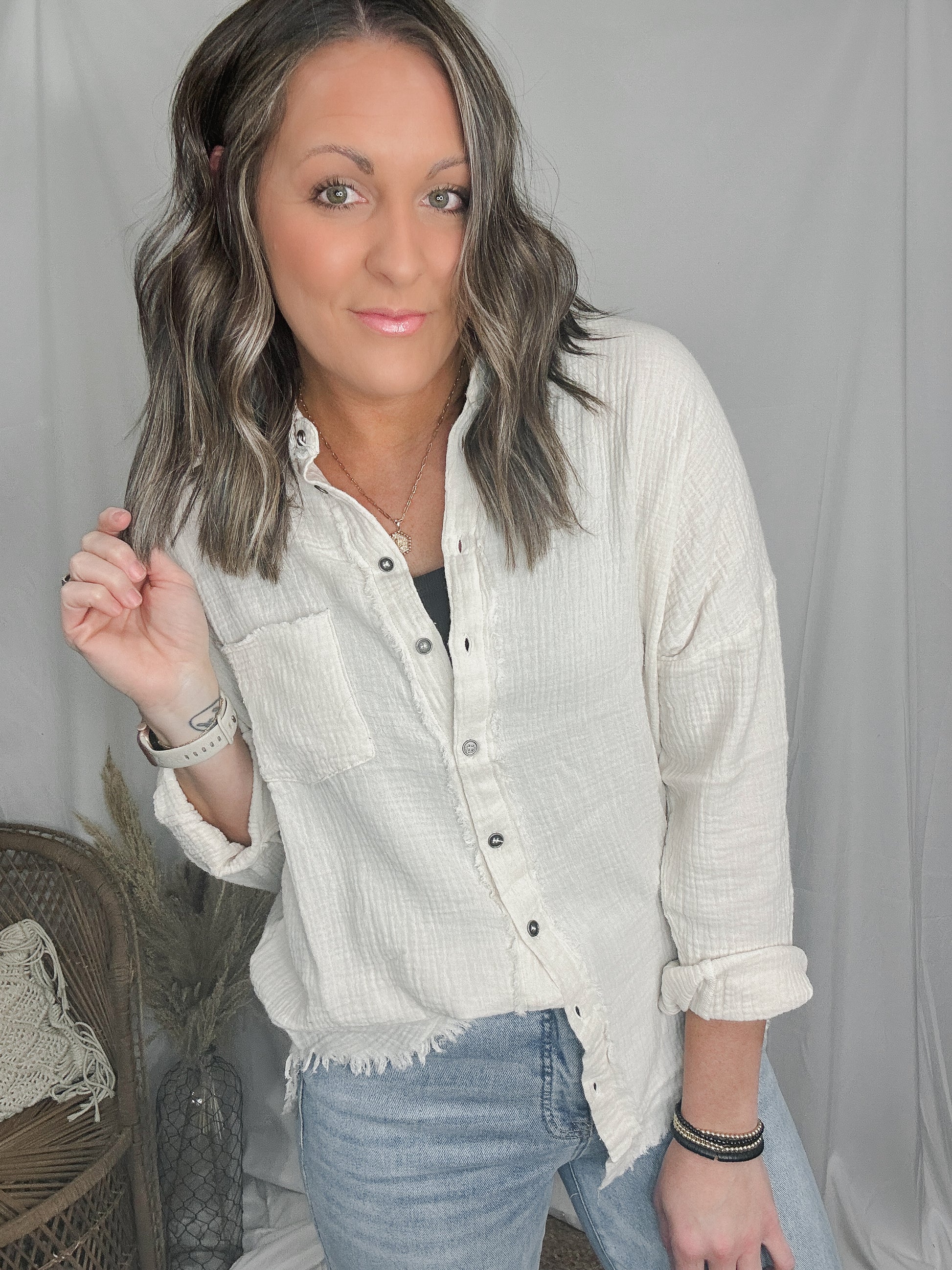 - Gauze Button Down