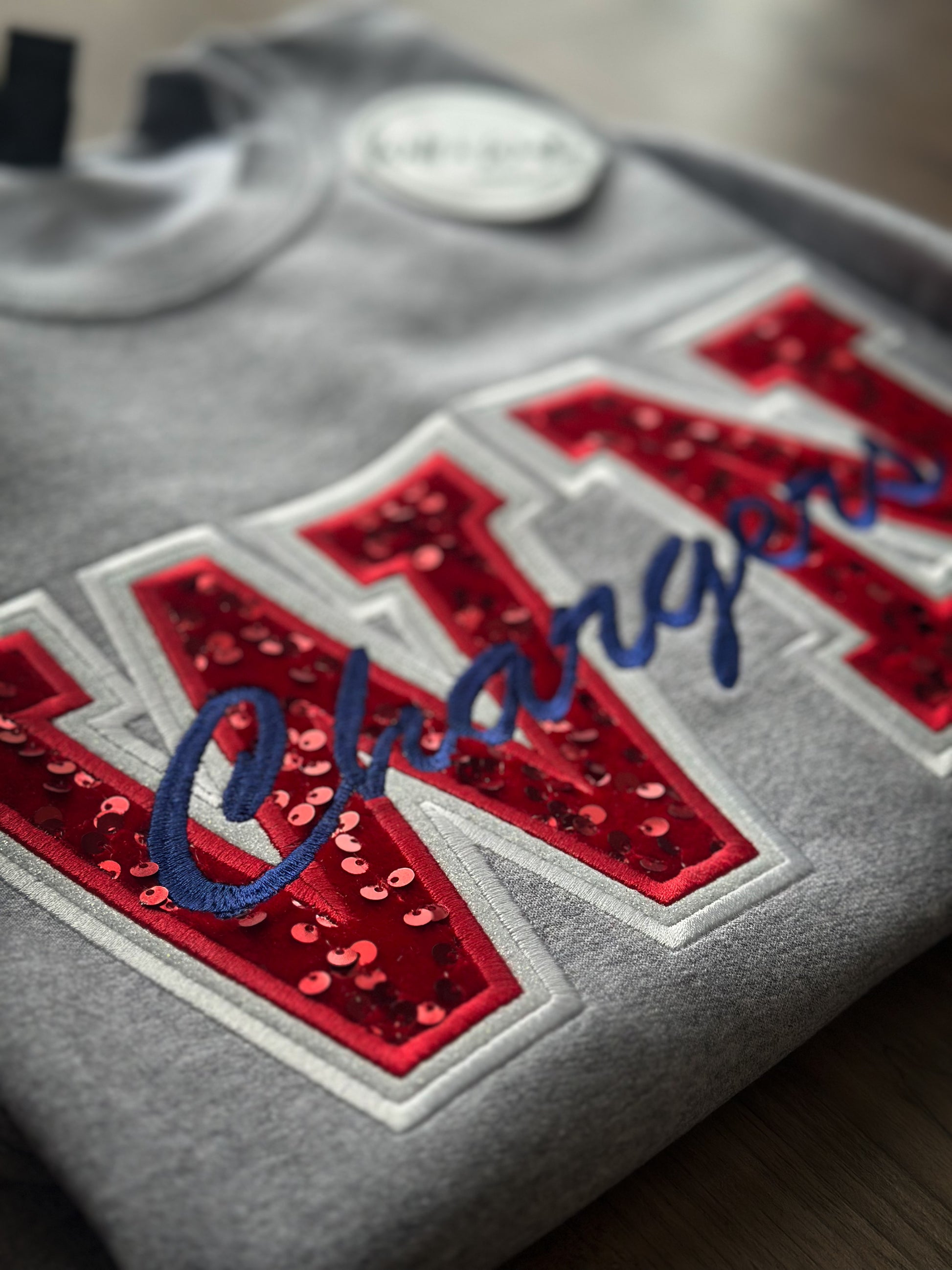 Bring the spirit in the cutest way possible. This cozy varsity crew features bold red sequins with “Chargers” stitched across the middle in classic blue, finished with white glitter HTV accents for just the right amount of shine. It’s the perfect mix of comfy + standout—easy to dress up or throw on for game day, school events, or everyday wear. A must-have for proud West Noble fans who love a little sparkle with their spirit