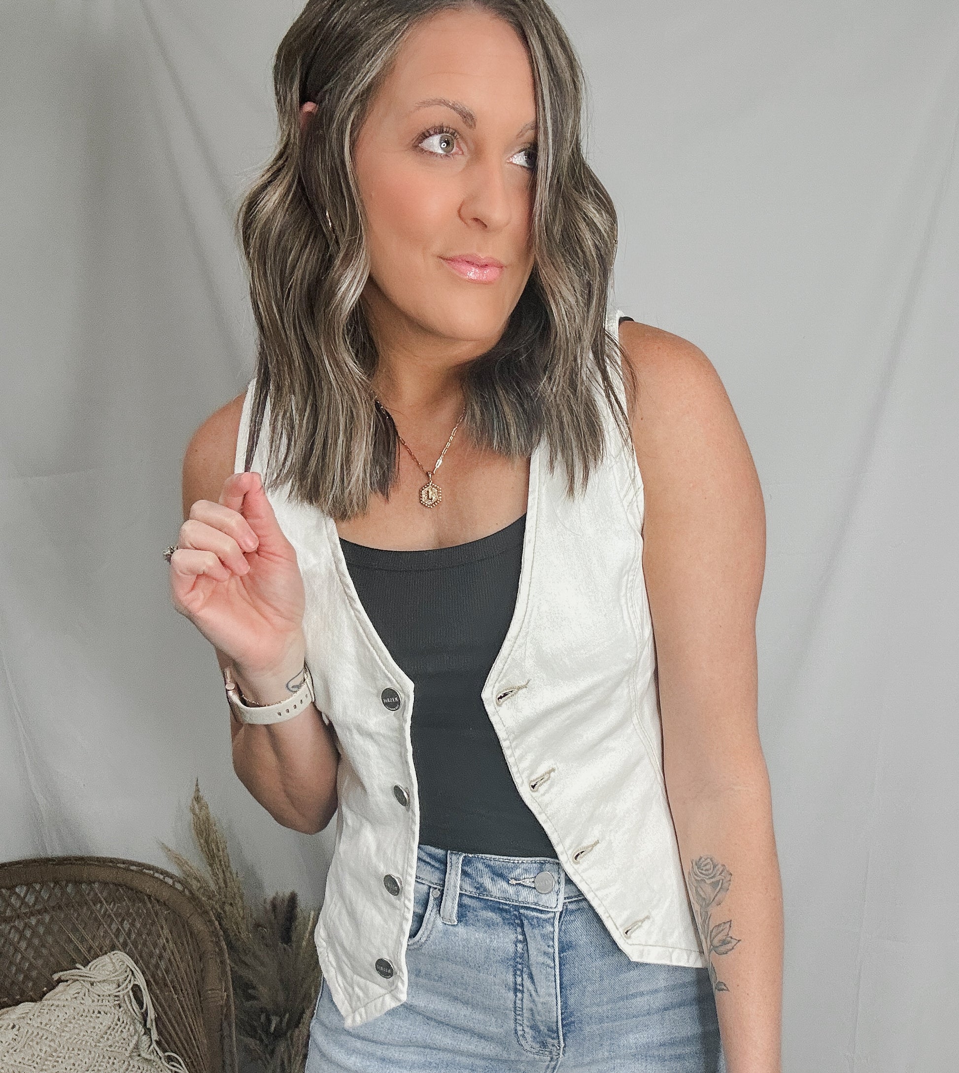 - Great layering piece for long sleeves, tanks, mesh tops etc.